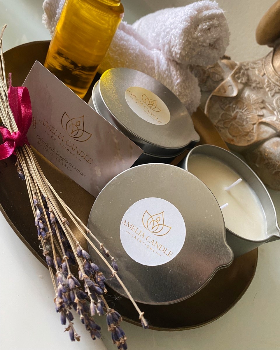 Vivez l’expérience de la bougie de massage by AMELIA CANDLE , idéal pour vos moments de douceur, à partager ou à offrir à soi-même.